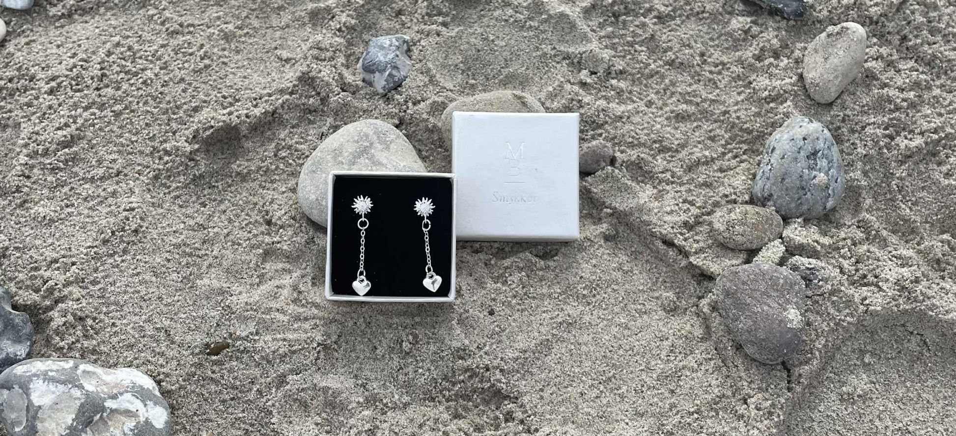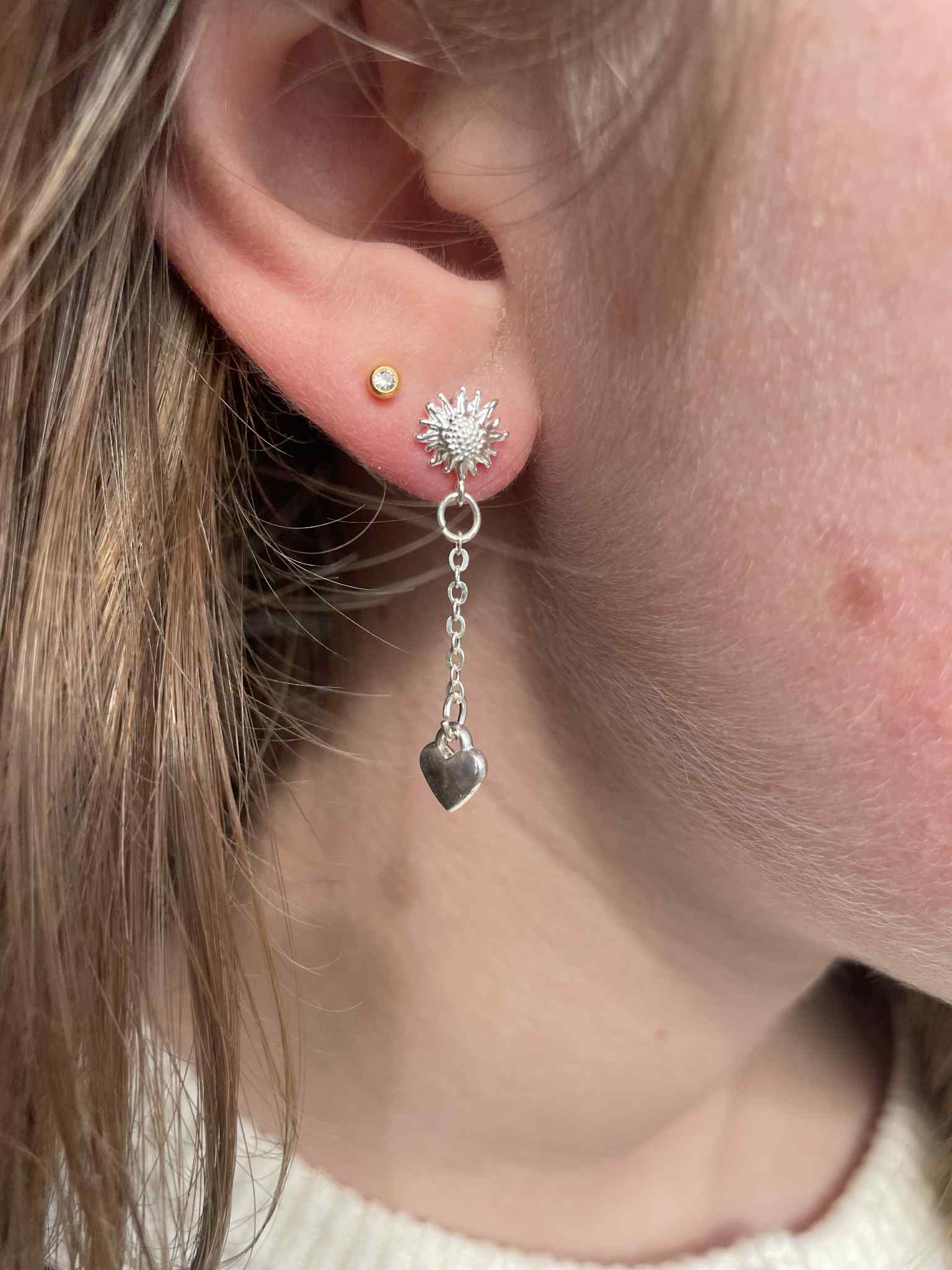 Alberte er en meget simpel søstjerne-ørestikker med en lille kæde med et hjerte for enden af kæden.