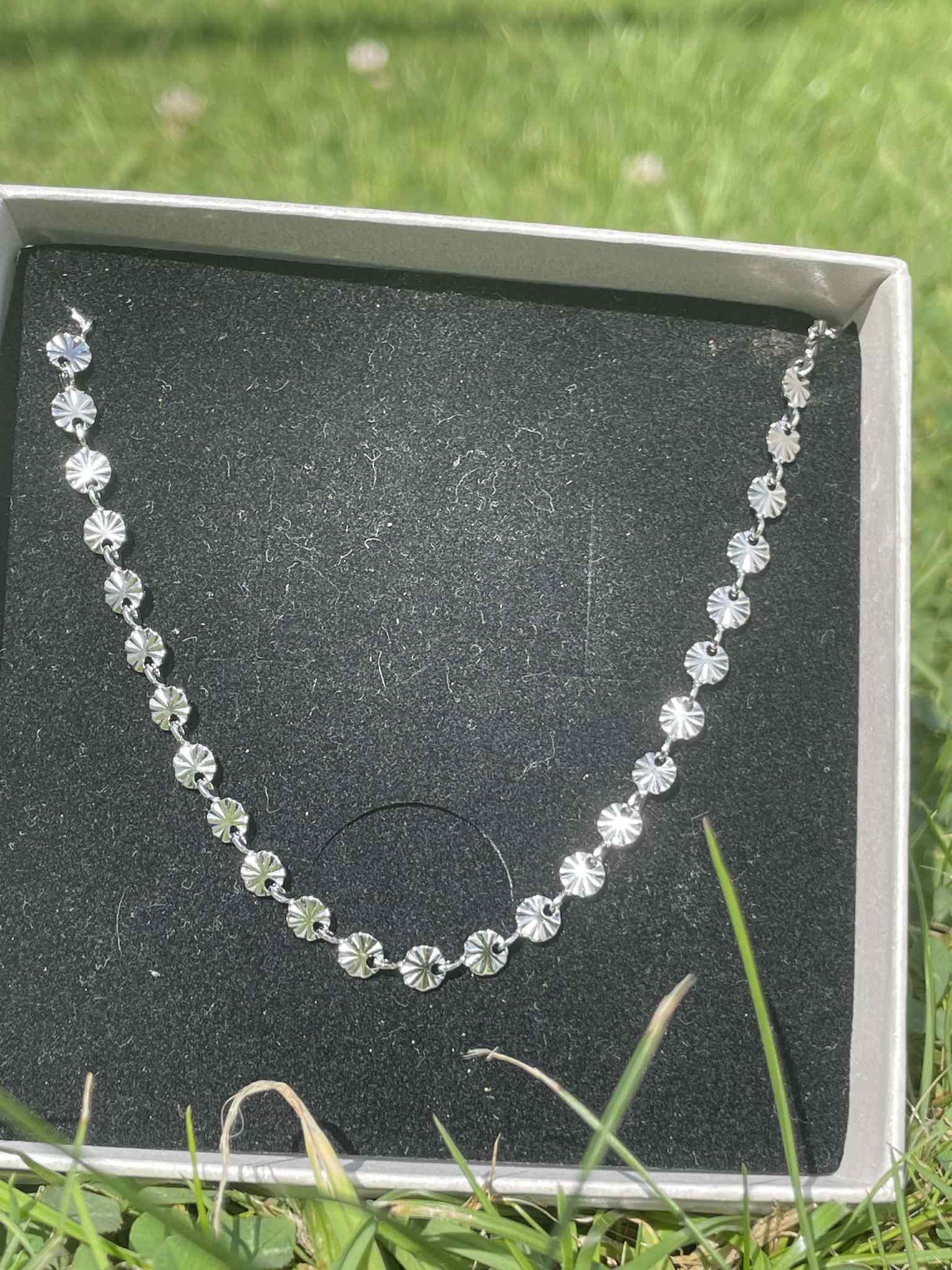 Smykket er vandfast og kan tåle vand, sved og parfume.