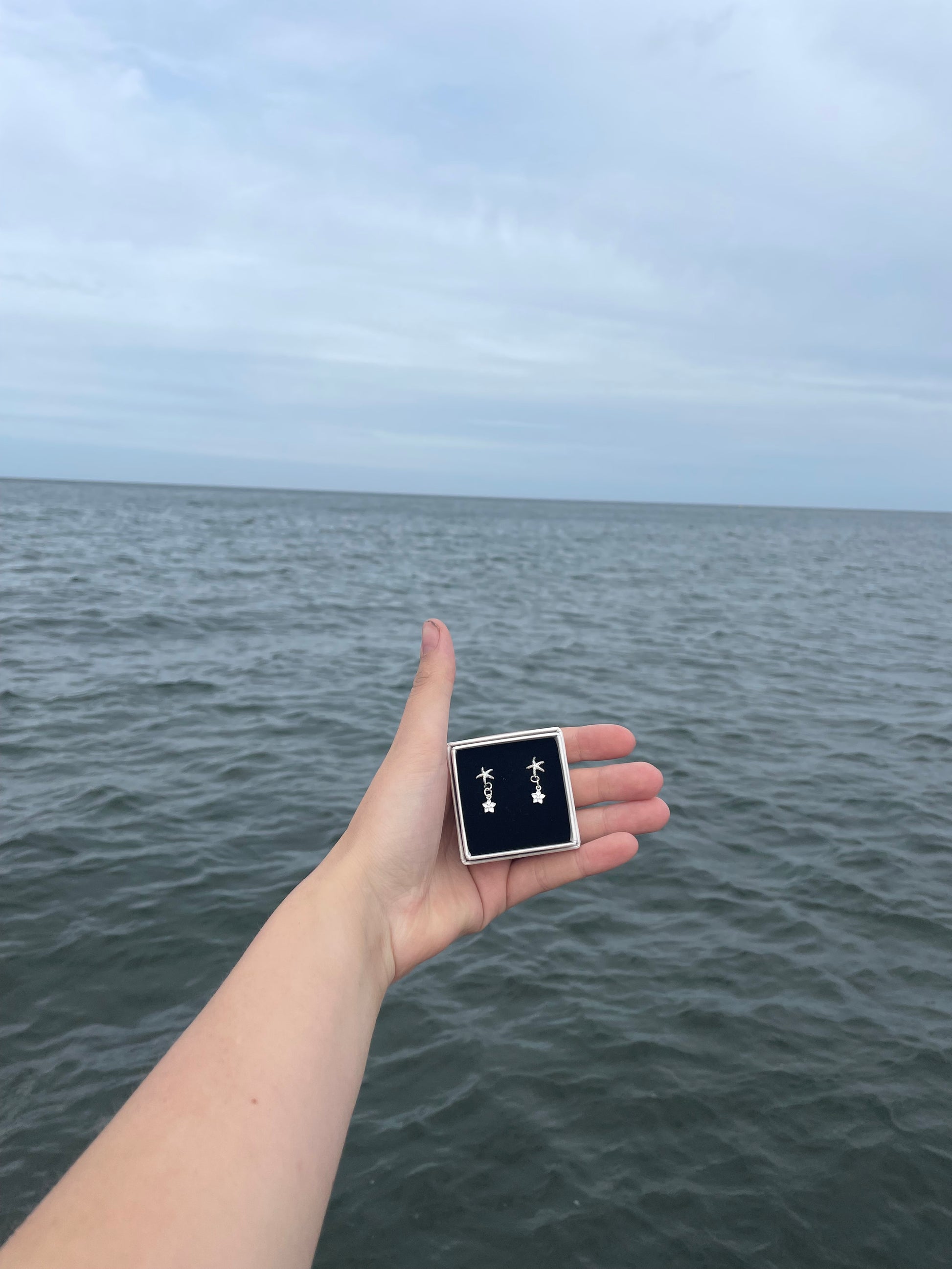 Vores Luna ørestikker, er et utrolig smukt sæt, havet skønhed og en lille blomst