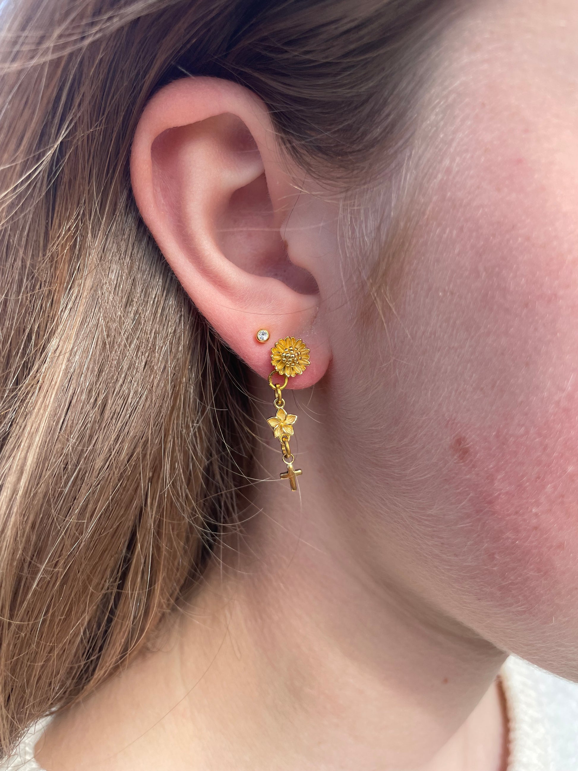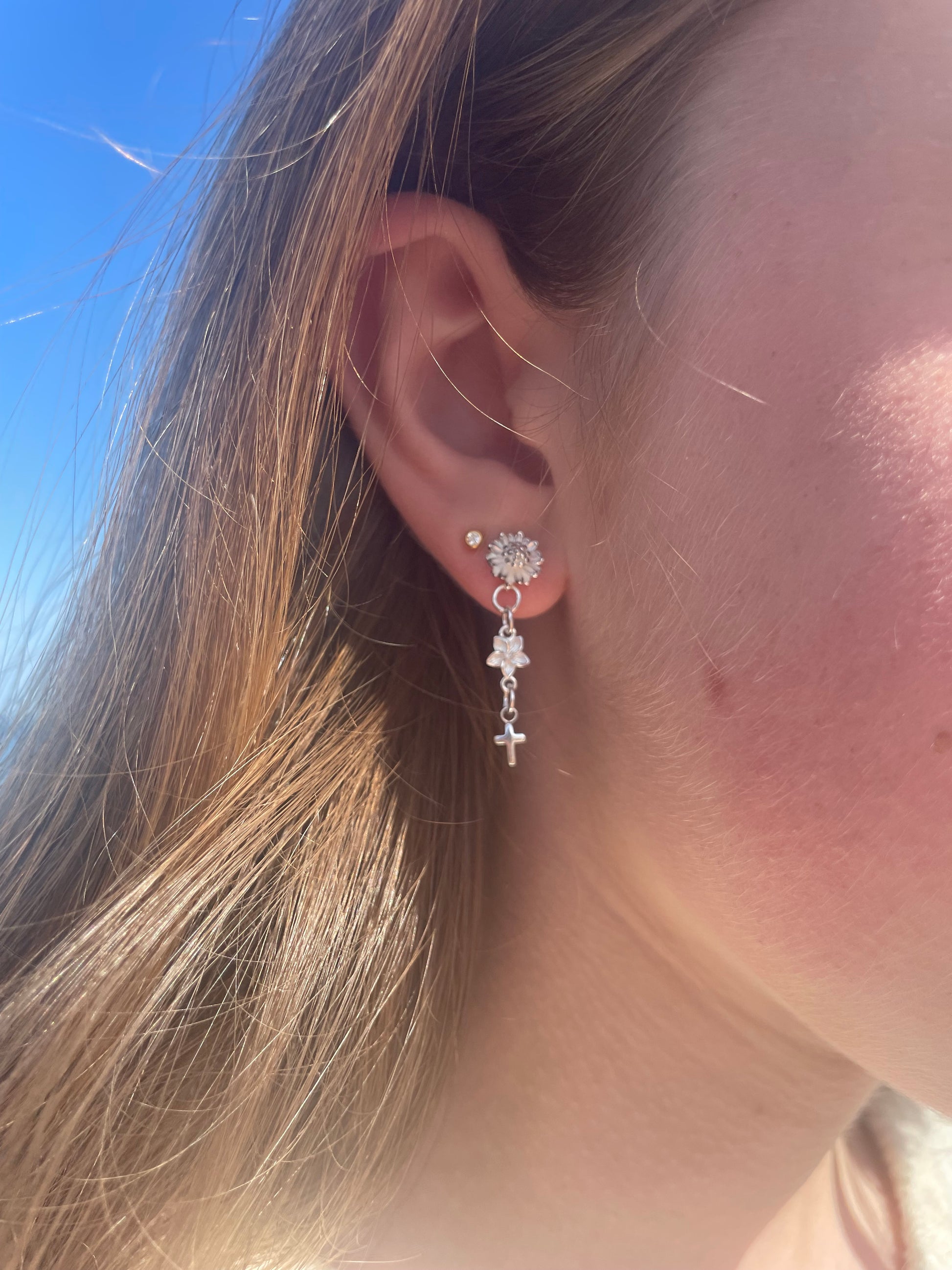 Rosa er et utrolig smukt par, dahlia ørestikker med en blomst, og et lille kors