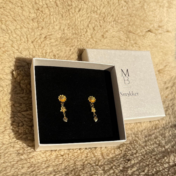 Rosa er et utrolig smukt par, dahlia ørestikker med en blomst, og et lille hjerte